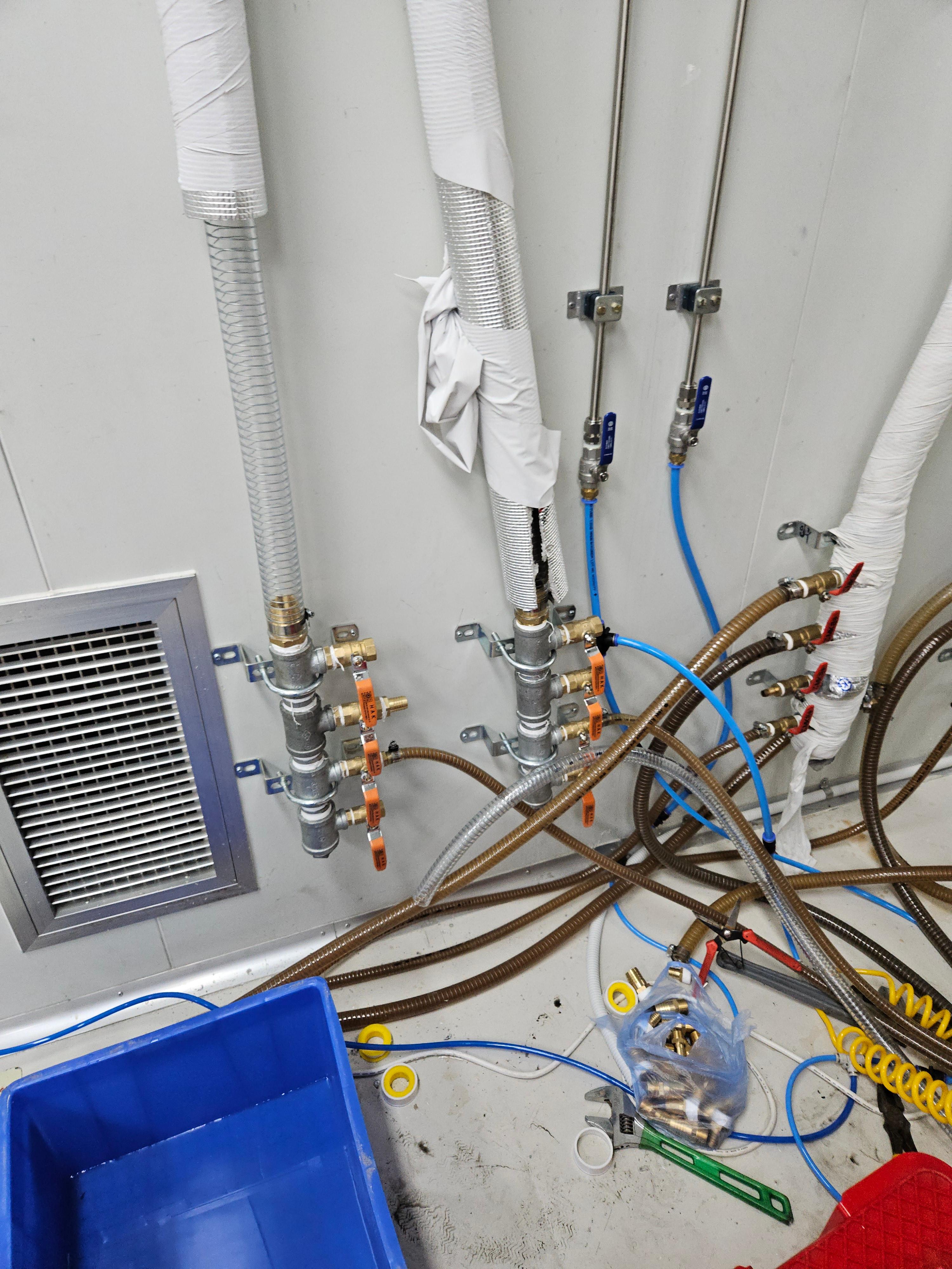 장비 설치 후에는 배관 연결, 전기 작업, 냉각수 온도 설정 등을 마무리했습니다. 이번 현장은 온도 25℃ 설정으로 고객님의 환경에 최적화된 냉각 성능을 구현했습니다.