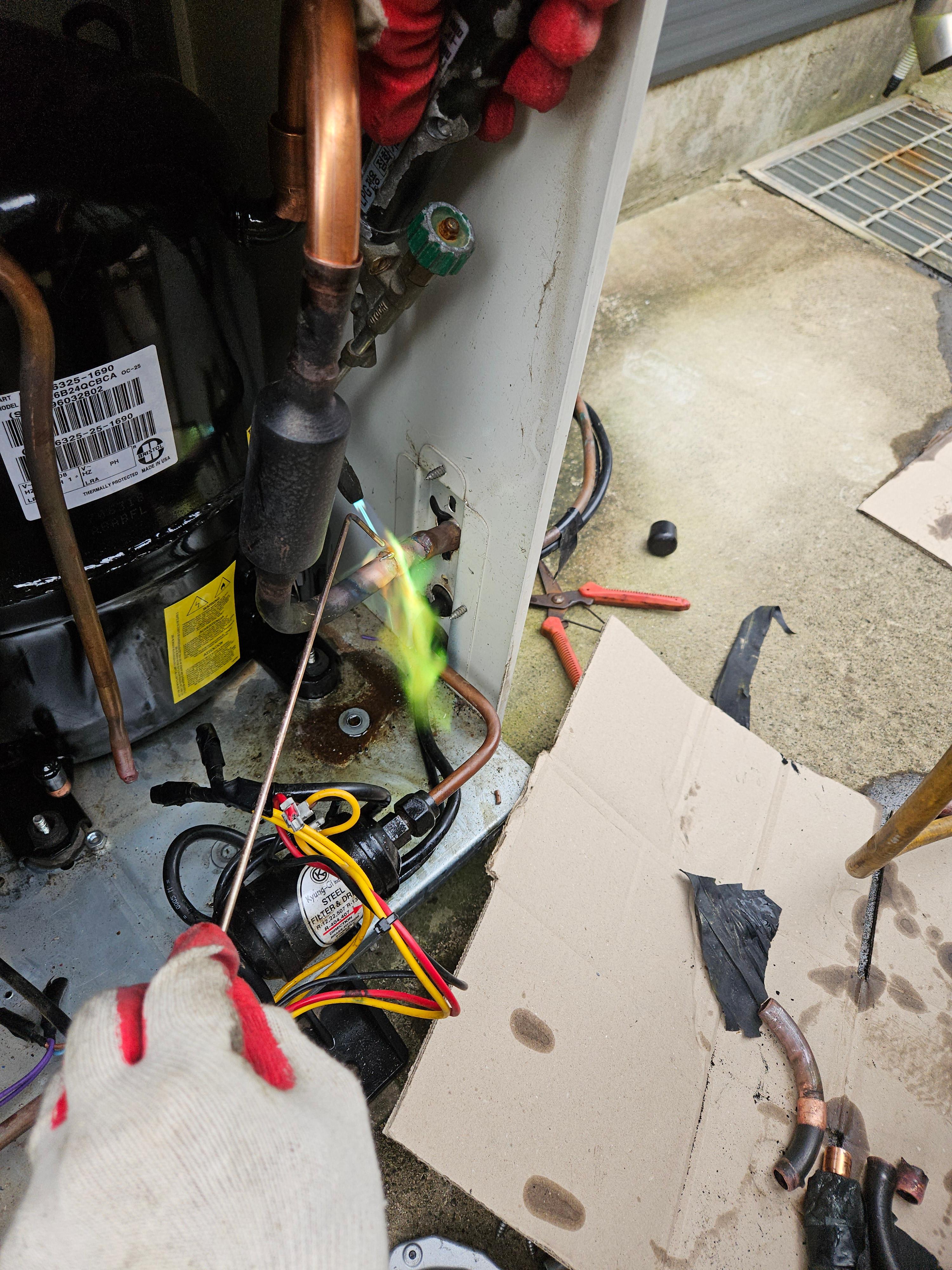 - ✅ 손상된 콤프레셔 및 부속 부품 제거