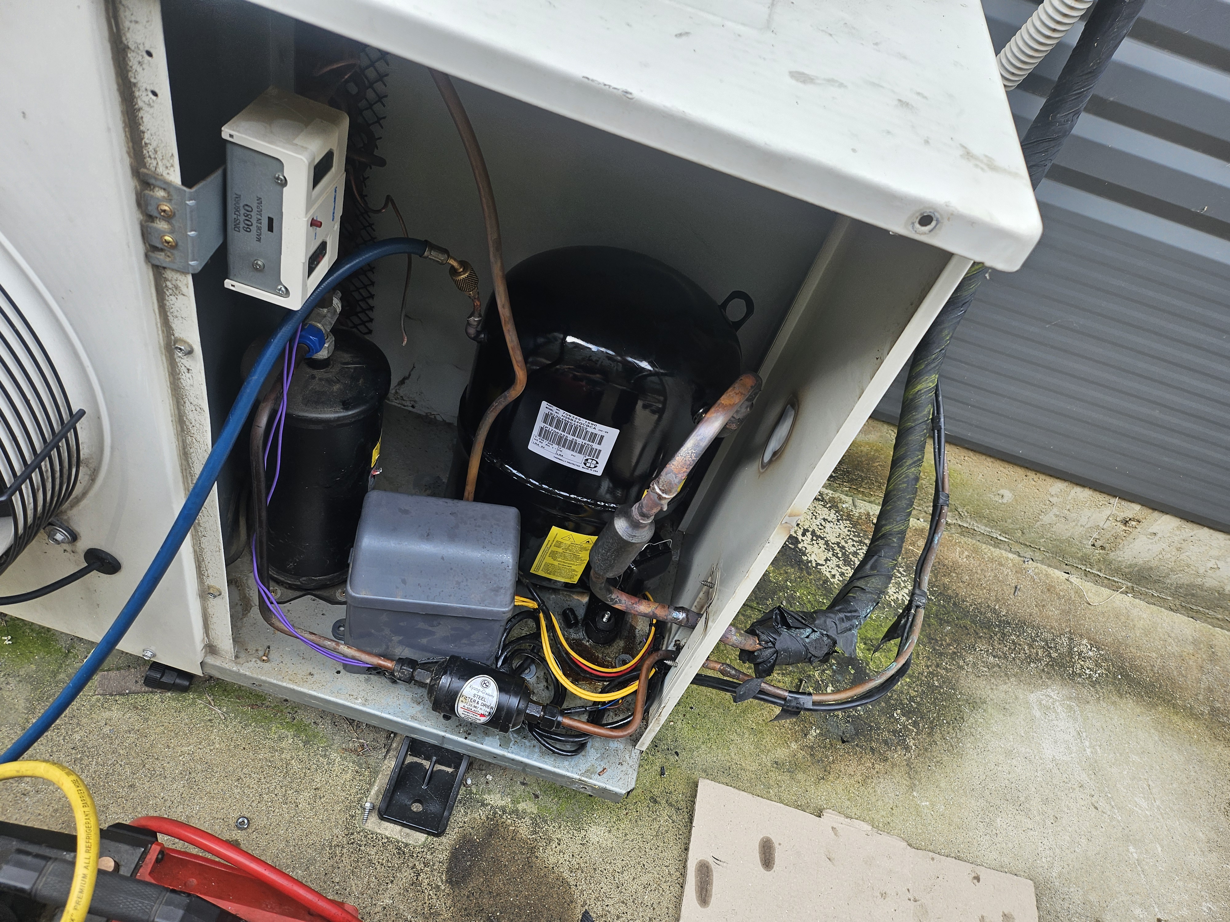 점검 결과, 콤프레셔가 과열된 상태였고, 내부 코일 손상도 확인되었습니다. 단순히 차단기를 올리는 것으로 해결되는 문제가 아니며, 이런 상황에서는 즉각적인 점검과 조치가 필요합니다.